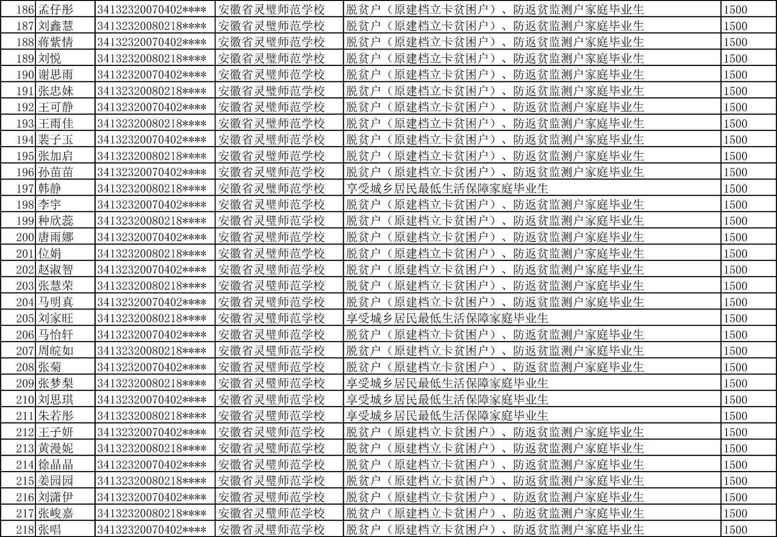 安徽省灵璧师范学校2026届困难毕业生求职补贴审核通过人员名单信息公示