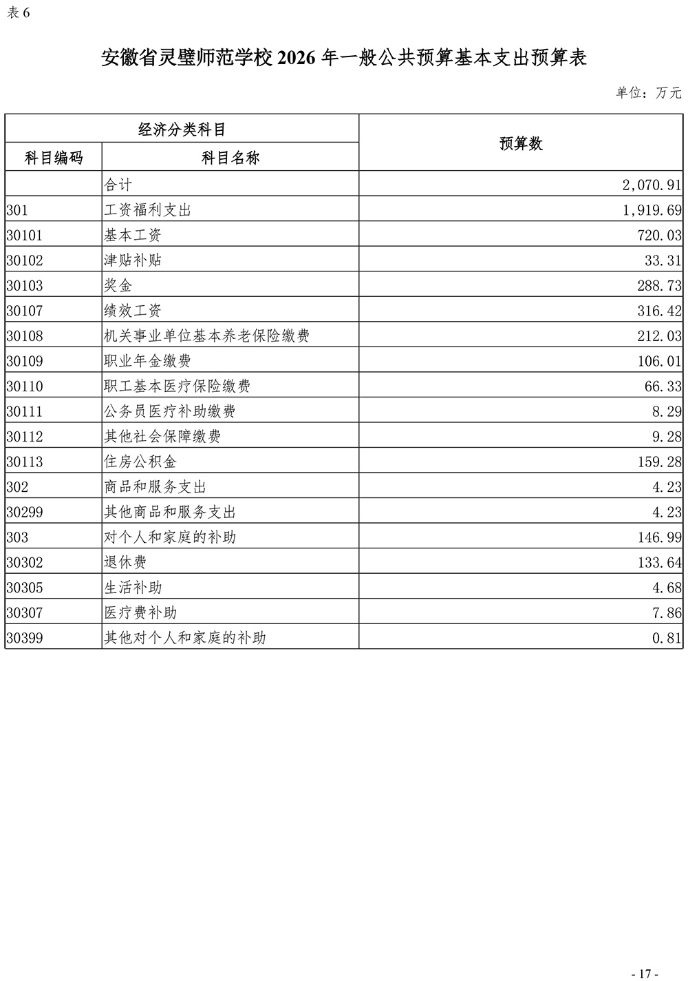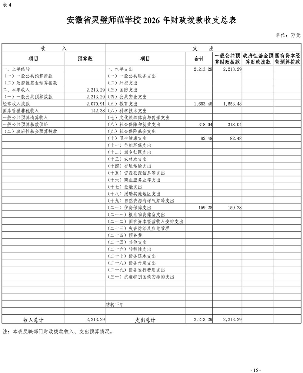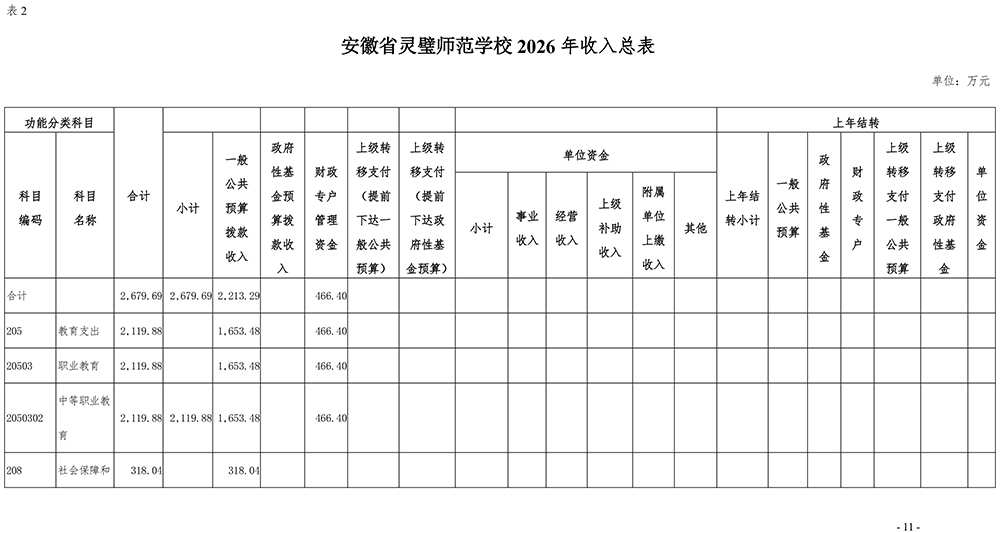 安徽省灵璧师范学校2026年单位预算